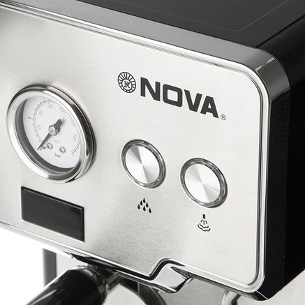 این دستگاه مجهز به صفحهی عریضی برای گرم نگه داشتن فنجان است. به همین دلیل به راحتی میتوانید دو الی سه فنجان را روی این صفحه قرار دهید و از گرم ماندن آنها اطمینان داشته باشید. اسپرسوساز NOVA NCM-128EXPS یک دستگاه چند منظوره است که علاوهبر اسپرسو، قادر به تهیهی تمامی قهوههای کرمدار نیز هست. اسپرسوساز NOVA NCM-128EXPS حدودا ۶ کیلوگرم وزن دارد و ابعاد آن برابر 200 * 300 * 350 است. توان این دستگاه برابر ۱۴۵۰ وات است. گنجایش مخزنِ آب اسپرسوساز NOVA NCM-128EXPS در حدود ۱.۷ لیتر است که نسبت به سایر همردههای خود از ظرفیت بیشتری برخوردار است. همچنین نسبت به قهوهسازهای دیگر این شرکت، نقطهی جوش آب آن قدرت بیشتری دارد، بنابراین طعم قهوهای که دریافت میکنید خالصتر خواهد بود. قدرت این دستگاه ۱۵ دیگ بخار است. به این معنی که قهوهای که از این دستگاه خارج میشود به دلیل ۱۵ مرتبه فشاری که به پلاتِ اسپرسو وارد میکند، دارای کرم غلیظی خواهد بود. طرز کار اسپرسوساز NOVA NCM-128EXPS بسیار راحت است.