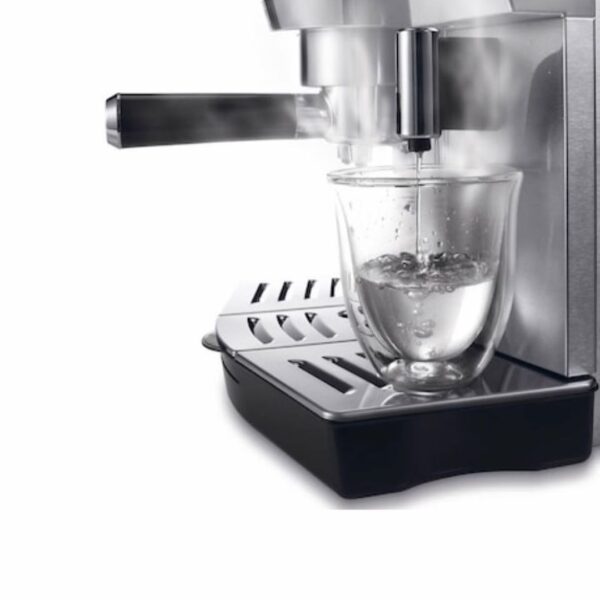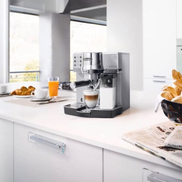 اسپرسوساز دلونگی مدل EC850M دستگاهی بسیار کاربردی و مدرن برای تهیه انواع قهوه با حفظ کیفیت است. این مدل با بهره گیری از توان طراحی شرکت معتبر دلونگی مشتریان این شرکت و خریداران این محصول را کاملا راضی نگه می دارد . این محصول مخزنی برای نگهداری دانه های قهوه ندارد و باید از قهوه آسیاب شده استفاده کرد. این مدل می تواند، اسپرسو و کاپوچینو آماده کند. تمام این امکانات از طریق پنل دسترسی دستگاه در اختیار مصرف کننده قرار می گیرد. مخزن آب در عقب دستگاه و مخزن شیر در جلوی دستگاه قرار دارد. سیستم ترموبلاک در این دستگاه در نظر گرفته شده است. فشار بخار 15 بار در این مدل باعث می شود تا قهوه به خوبی تهیه شود و کیفیت مقبولی داشته باشد. بدنه استیل اسپرسوساز دلونگی مدل EC850M علاوه بر استحکام زیبایی بخش آشپزخانه هم هست. طراحی دستگاه طوری است که محلی برای نگهداری فنجان ها هم در نظر گرفته شده است.مصرف انرژی این مدل بسیار پایین بوده و در رده انرژی A قرار می گیرد. دلونگی از برترین تولیدکنندگان دستگاه های اسپرسو و قهوه ساز دنیا است و اولین نام در این بازار است که به ذهن مشتریان می رسد