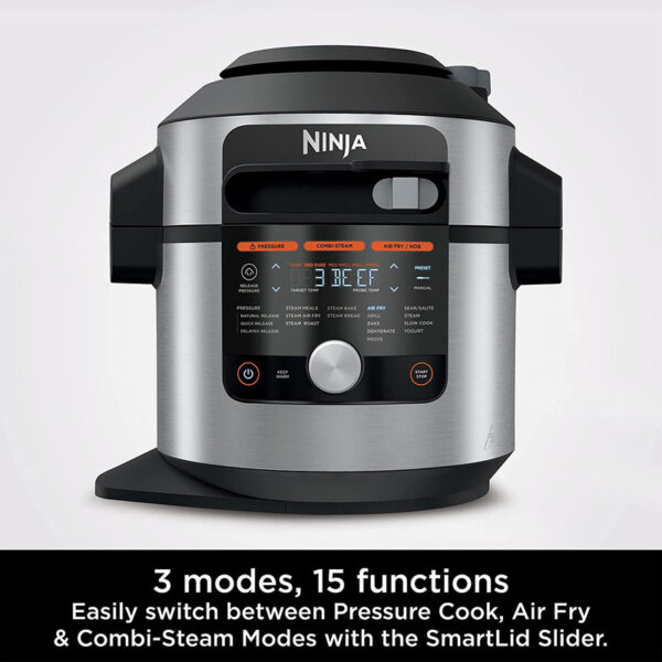 دارای فناوری SmartLid Slider / دارای برنامه Combi-Steam (بخارپز و هواپز همزمان) / دارای تکنولوژی Smart Cook پخت هوشمند / برنامه های پخت Pressure ، Steam Meals ، Steam Air Fry ، Steam Roast ، Steam Bake ، Steam Bread ، Air Fry ، Grill ، Bake ، Dehydrate ، Prove ، Sear/Saute ، Steam ، . Slow Cook ، Yogurt ، Keep Warm /
