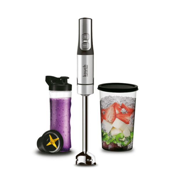 موتور پرقدرت با توان ۱۵۰۰ وات، گوشت کوب با پایه استیل و چهار تیغه تیتانیومی، دور موتور در پانزده سرعت قابل تنظیم، دارای حالت توربو، سایز پایه گوشت کوب بزرگ میباشد که براحتی امکان استفاده در ظروف بزرگ و قابلمه را برای شما فراهم میکند، دارای ظرف مجزا برای تهیه انواع شیک و اسموتی با چهار تیغه از جنس تیتانیوم، لیوان میکس مدرج بهمراه درب پوش